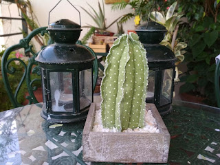 Me ha dado mi hermana la cajita de madera, me la dió con el bajo roto y como tengo fama un poco de recoger todo lo que se va a tirar, la recogí encantada, le pegue el fondo , fuí al chino a por piedrecitas y le coloqué el cactus.